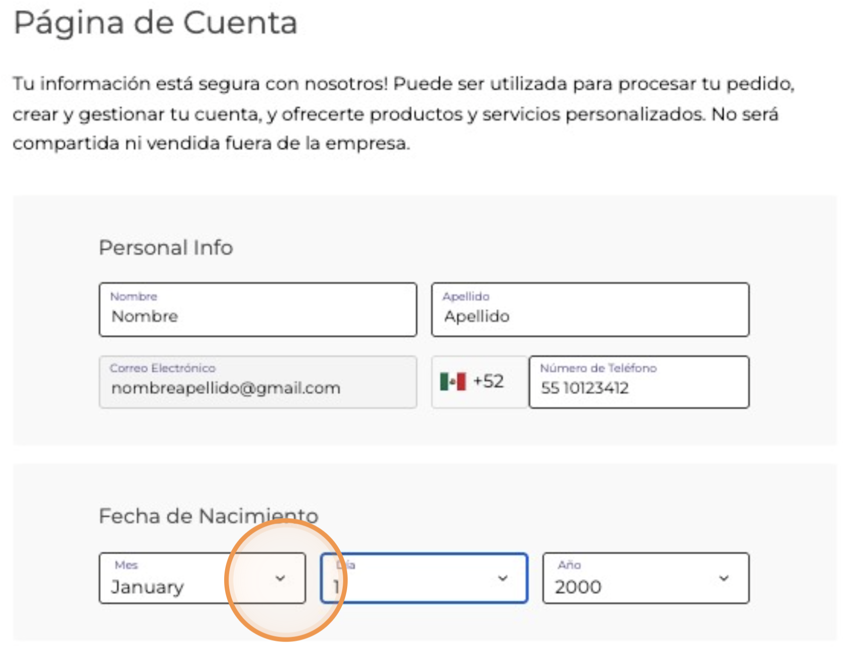 2. Haz "click" en la lista desplegable de los países y selecciona "México".