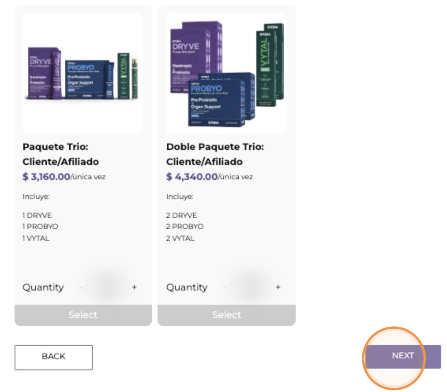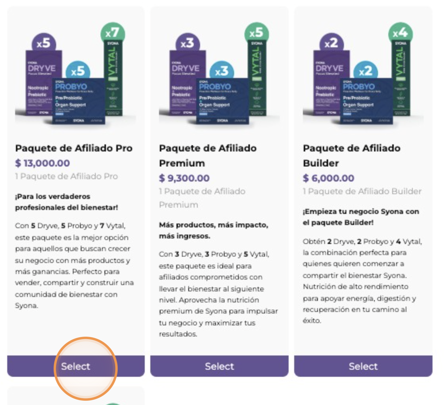 13. Selecciona tu paquete de afiliación de tu preferencia y haz "click" en "Next".