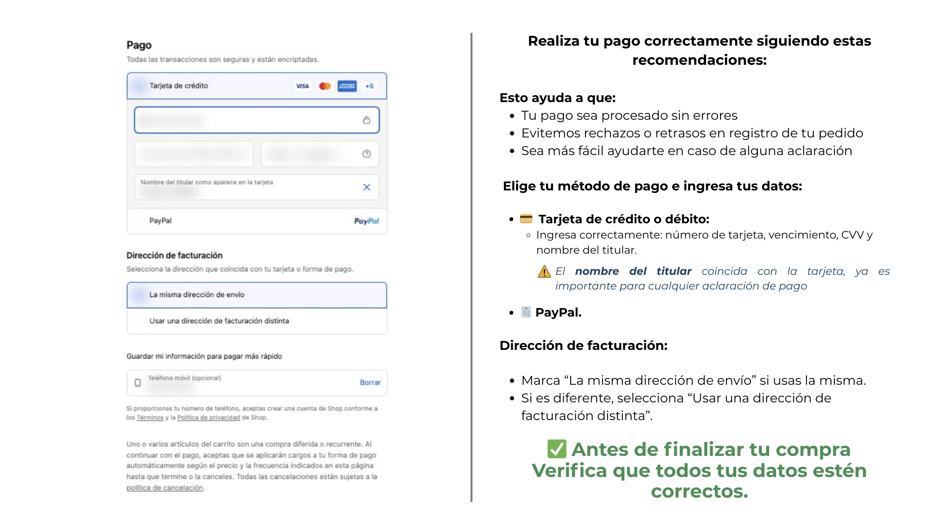 Si la información de facturación es la misma que la de envío, selecciona la casilla “La misma dirección de envío”.
